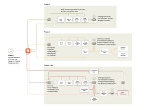 وعند الحصول على الضوء الأخضر من المشغلين، ينفّذ النظام عملية الاستغلال والسيطرة على النظام المستهدف، قبل الانتقال إلى مراحل ما بعد الاختراق مثل جمع بيانات الاعتماد والتنقل الجانبي داخل الشبكة وجمع البيانات واستخراجها.