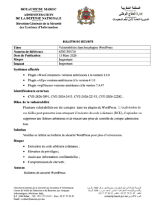 رابط الثغرة : https://www.dgssi.gov.ma/fr/bulletins/vulnerabilites-dans-les-plugins-wordpress-0